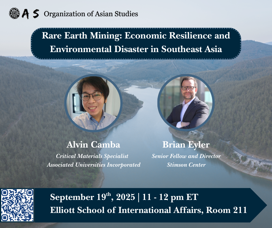 The Organization of Asian Studies (OAS) invites you to a conversation with Southeast Asia regional experts on the new developments in Myanmar’s rare earth mines, their environmental impact, and the broader economic implications.
